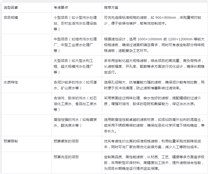 我們還精心準(zhǔn)備了一份選型參考表,詳細(xì)列出了不同規(guī)格、材質(zhì)、開孔率的預(yù)制混凝土濾板及其對應(yīng)的適用場景、性能特點(diǎn)、價(jià)格區(qū)間等信息,方便您一目了然地進(jìn)行對比和選擇。如有任何疑問,歡迎隨時(shí)聯(lián)系我們的專業(yè)銷售團(tuán)隊(duì),我們將竭誠為您提供一對一的精準(zhǔn)選型建議。