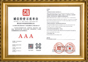 誠(chéng)信經(jīng)營(yíng)示范單位證書(shū)