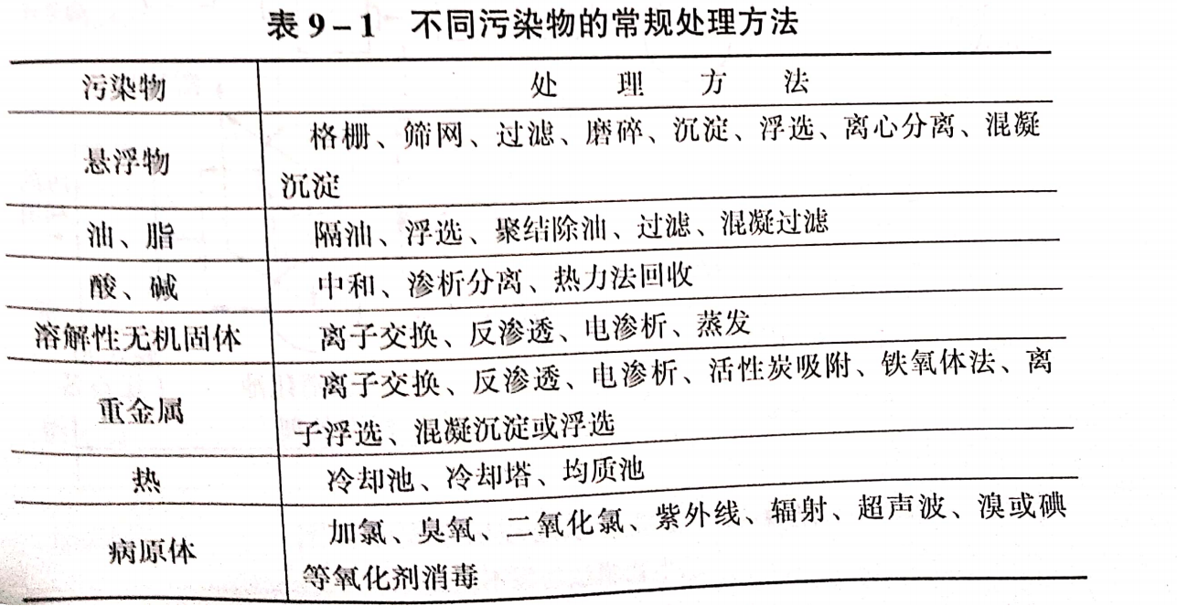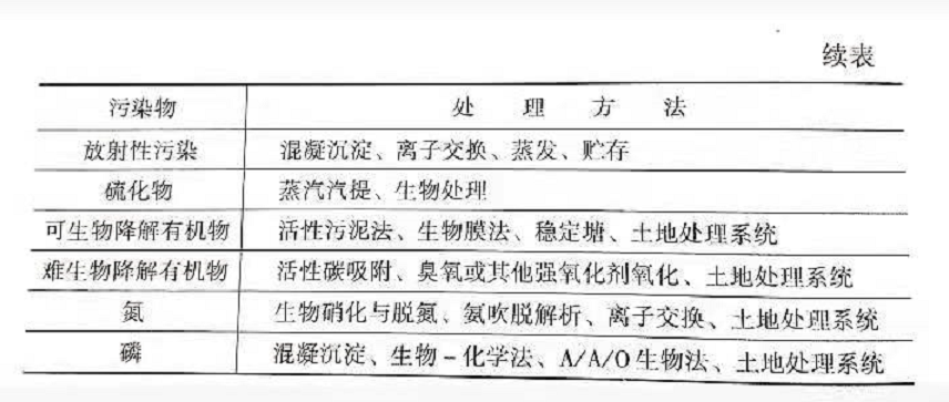 下表列出了針對(duì)廢水中的具體污染物成分和通常用的方法。